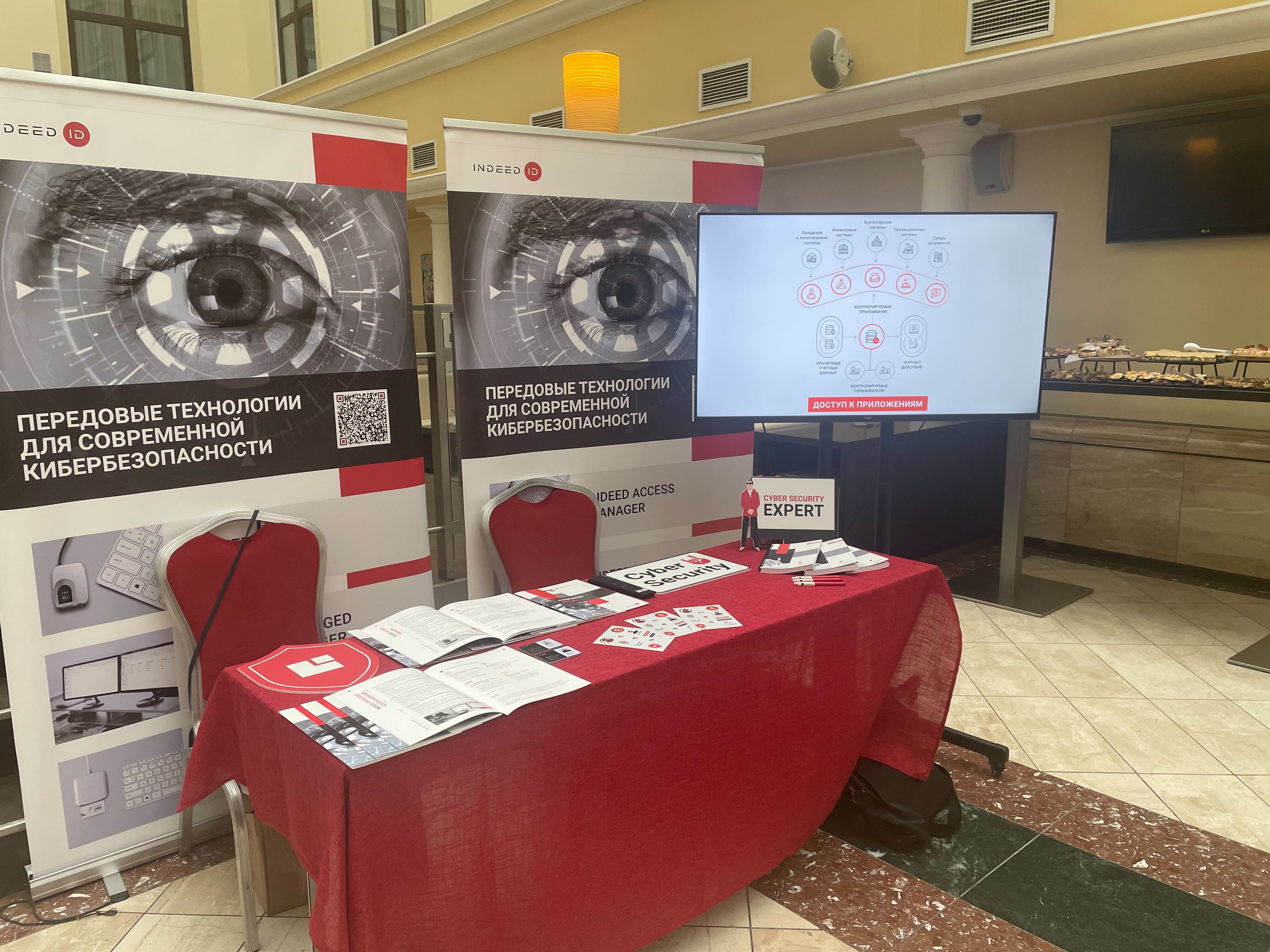 Представили нашу команду директор по развитию бизнеса Ольга Попова и руководитель технологического консалтинга Ярослав Голеусов. Они рассказали о наших возможностях в области импортозамещения. На стенде Компании Индид любой желающий мог получить самую актуальную информацию о том, как перейти с зарубежных решений на наши продукты, а также ознакомиться с выгодными условиями замены иностранных средств управления доступом и защиты доступа российскими программными средствами.