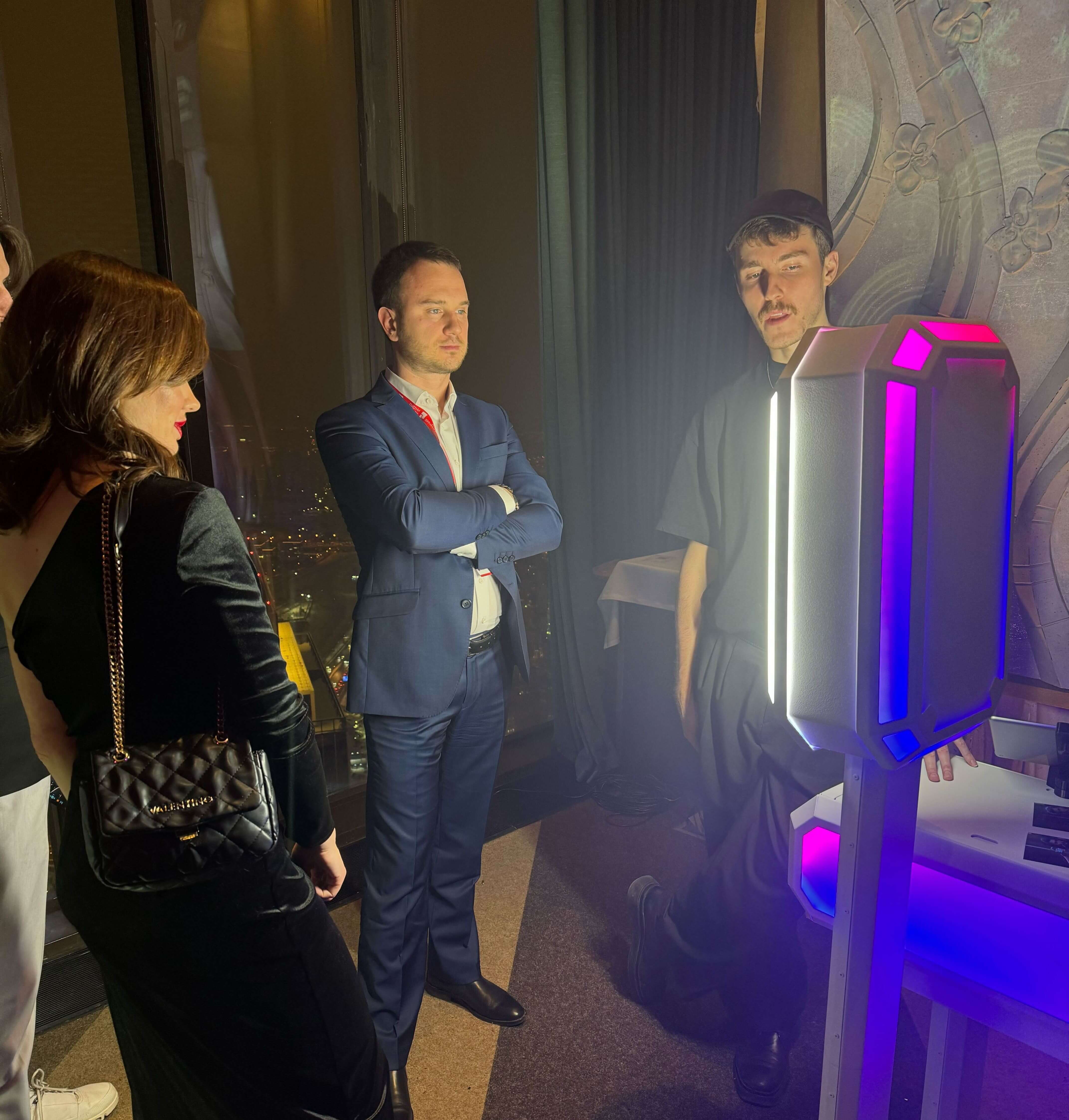 Одной из главных изюминок вечера стала интерактивная фотозона на основе нейросети. У каждого гостя была уникальная возможность придать своей фотографии гиперреалистичный характер. Нейросеть преобразовала каждое изображение в стиле киберпанк. При этом сохранялись черты лица, копировались позы, но человек на изображении приобретал новый образ себя.