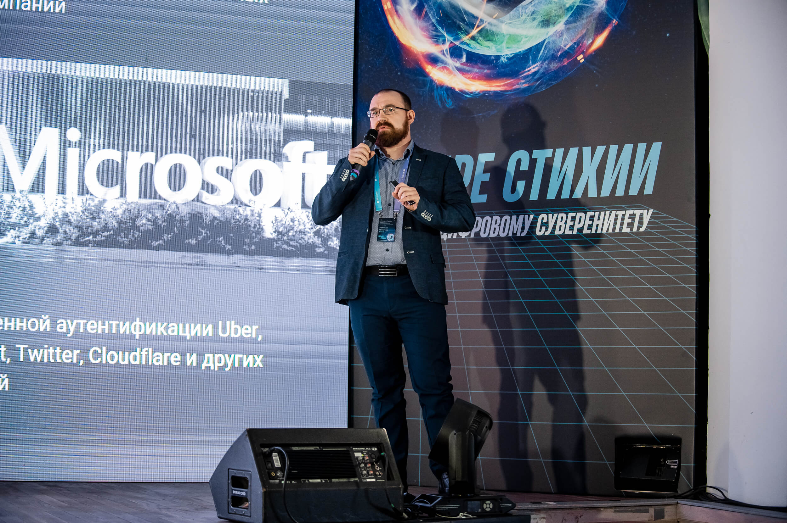 Руководитель технологического консалтинга Ярослав Голеусов захватил первую из стихий — землю. В первом блоке конференции, посвященном защите данных, Ярослав выступил с докладом на тему: «Экосистема продуктов Компании Индид для защиты доступа”.
